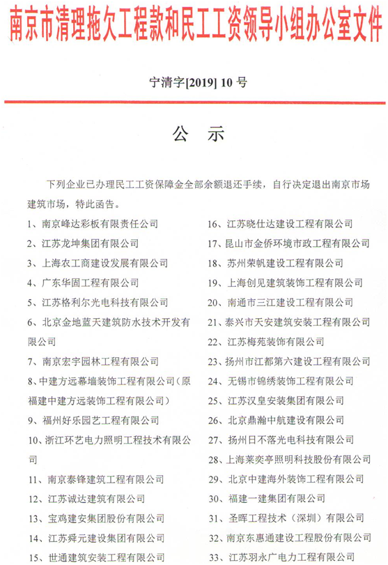 市清欠办公示-宁清字[2019]10号
