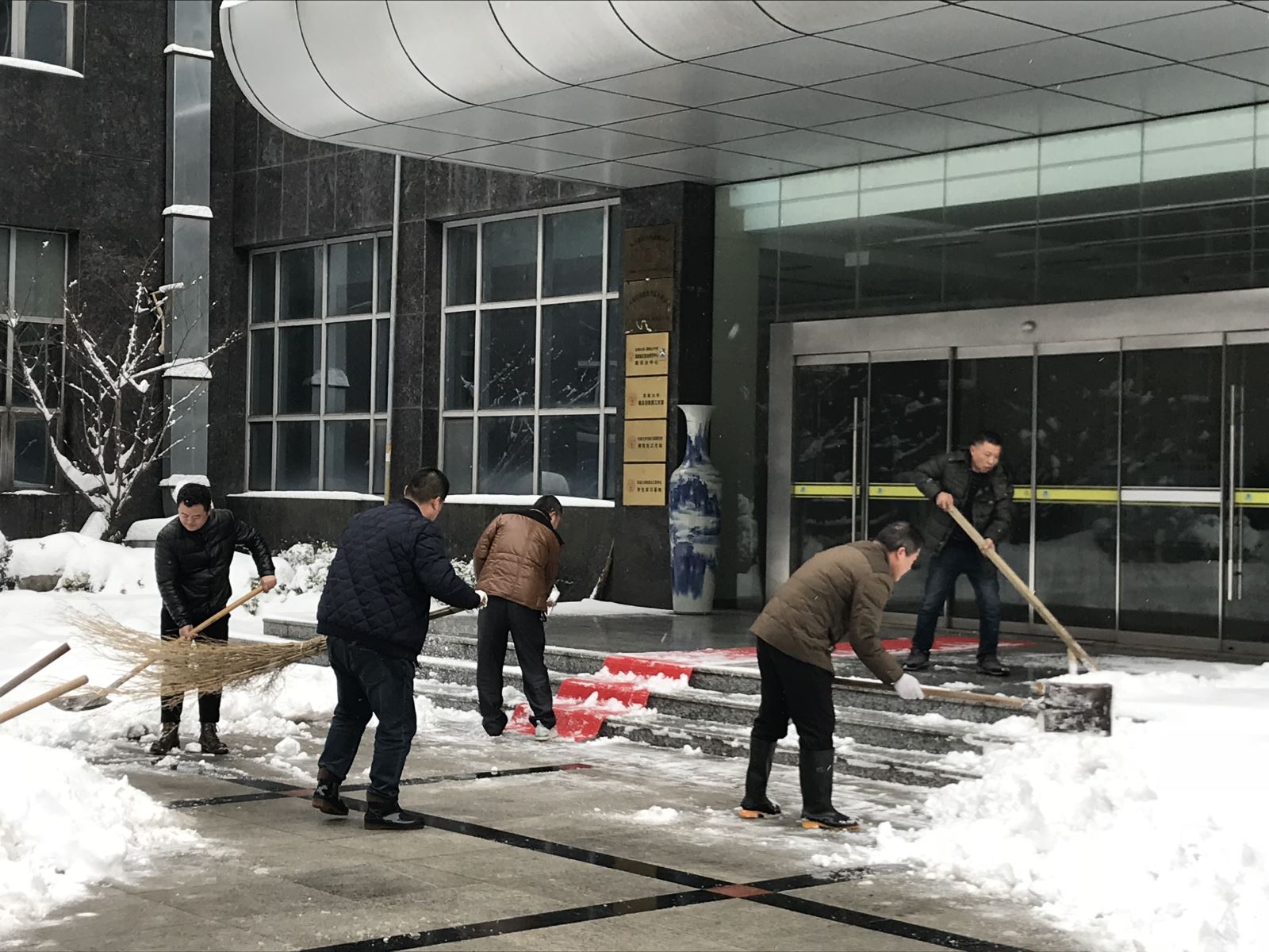 众人拾柴火焰高.各位同事冒着严寒、顶着雪花,经过不到一个小时的清理,公司门口路面及人行道上的积雪已全部清除干净。这次铲雪活动为同事及行人们打开了一条主要通道,为大家行走安全提供了保障。不畏严寒的扫雪除冰的同事们们成为了雪地里一道靓丽的风景线!岁月静好,总有人为我们负重前行!谢谢你们的无私付出,辛苦啦!