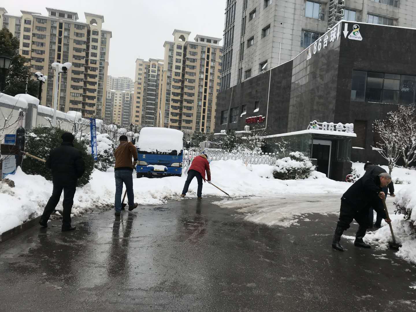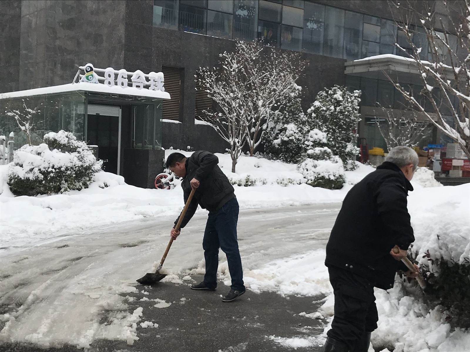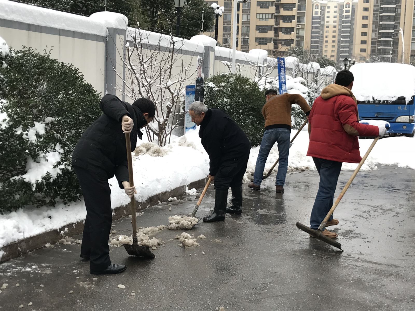 1月27日,大雪再次如期而至。由于天气变化,道路积雪结冰现象非常严重。为了方便周一大家的出行,1月28日下午,在公司领导的带领下,公司同事们放弃周末休息时间积极主动的加入到铲雪大队伍中。尽管天气寒冷,但除雪现场却是一片热火朝天的景象。铁锹与地面的摩擦发出的沙沙声、同事们谈话时的欢声笑语声……,各种声音交织在一起,仿佛奏响了欢快的交响乐。
